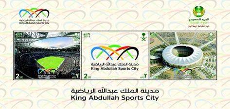 سوف تصدر مؤسسة البريد السعودي 3 طوابع بريدية بمناسبة إفتتاح ملعب الملك عبد الله الرياضي بجدة علي شكل بطاقة جميلة ورائعة