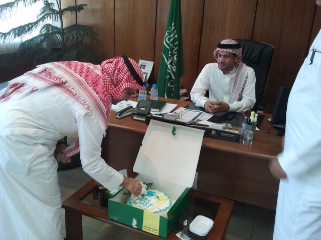فاجأ سعادة الأستاذ/عادل بن يحي كابلي مدير عام بريد منطقة مكة المكرمة المساعد لمراكز الخدمة منسوبي مكتب بريد المساعدية بجدة بزيارة خاطفة سعيده قبيل صلاة ظهر يوم الأحد 11ذو القعده 1432هـ الموافق 9 أكتوبر 2011 والذي يصادف ذكرى يوم الأتحاد البريد العالمي معلناً مشاركتهم إحتفالية مصغرة بهذة المناسبة بحضور مدير المكتب المكلف الأستاذ/حسين بن فتح الدين معافا ورئيس قسم ألأمن البريدي الأستاذ/ عبدالهادي الشهري ولفيف من موظفي ومستخدمي المكتب وذلك بعد أداء صلاة الظهر مباشرة . هذا وقد بدأ الحفل بكلمة تعريفية بالمناسبة من قبل سعادته ومن ثم قام سكرتير المكتب الأستاذ/عبدالله بن ضيف الله القرني بتقطيع وتوزيع كعكة على الحاضرين تشرفت بإرسالها خصيصا لهذه المناسبة مديرة القسم النسوي بالمنطقة الأستاذه/مرفت كيال مشاركة منهم للجميع هذه الذكرى . بعد ذلك شكر مدير المكتب ومنسوبوه سعادة الاستاذ/عادل كابلي على حضوره ومفاجأته السارة التي أسعدتهم جميعاً وتفرق من بعدها الكل عائدين إلى أعمالهم .