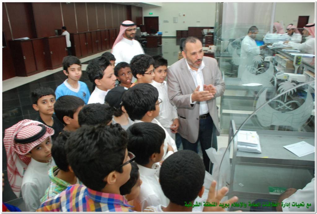 في إطار برنامج الزيارات التعريفية بالخدمة البريدية الذي تنظمه إدارة العلاقات العامة والإعلام بالمنطقة الشرقية بتوجيهات من قبل سعادة مدير عام بريد المنطقة الشرقية الأستاذ سعد بن عبد الرحمن العثمان لطلاب المدارس بمختلف مراحلها قامت مجموعة طلابية من مدارس محمد الفاتح الاهلية بالدمام قوامها 20 طالباً يرافقهم المرشد الطلابي الأستاذ محمد محمود الزنقلي بزيارة المجمع البريدي بالدمام .