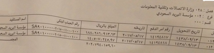 نتقدم لمعاليكم بشكوى ضد مؤسسة البريد السعودي لتاخرها في صرف مكافأة رمضان لعام 1438هـ لمنسوبي المؤسسة مع العلم بأن مبالغ المكافأة محولة لحساب البريد السعودي من يوم 13 رمضان 1438هـ حسب صورة الكشف المرفق ولحد تاريخ هذا الموضوع في 17 رمضان 1438هـ لم تحول المكافأة لحساب الموظفين وهذا يعني وجود تقصير وعدم خبرة من موظفي الموارد البشرية في المؤسسة .