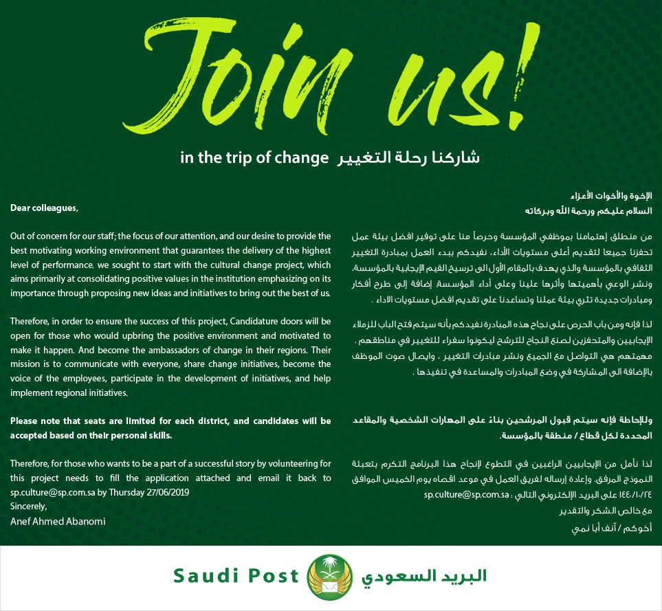 مبادرة جديدة للبريد السعودية للمشاركة في توفير أفضل بيئة عمل