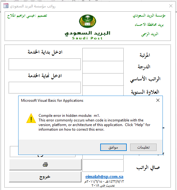 لاسف نفس المشكلة لاتعمل حقول الاكسس كامله يوجد خطأ في قاعدة البيانات